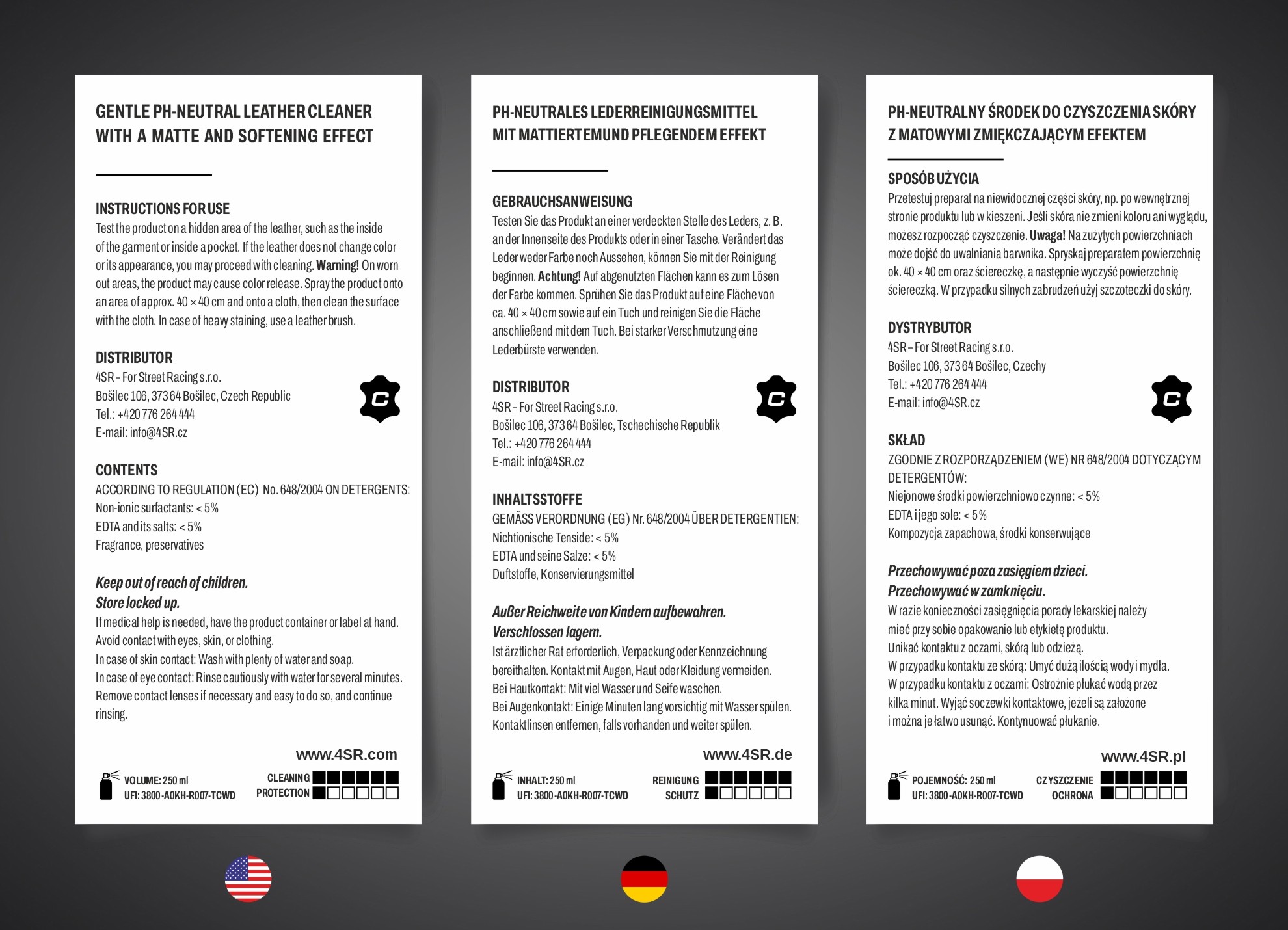 Gentle pH-neutral leather cleaner with a matte and softening effect.
