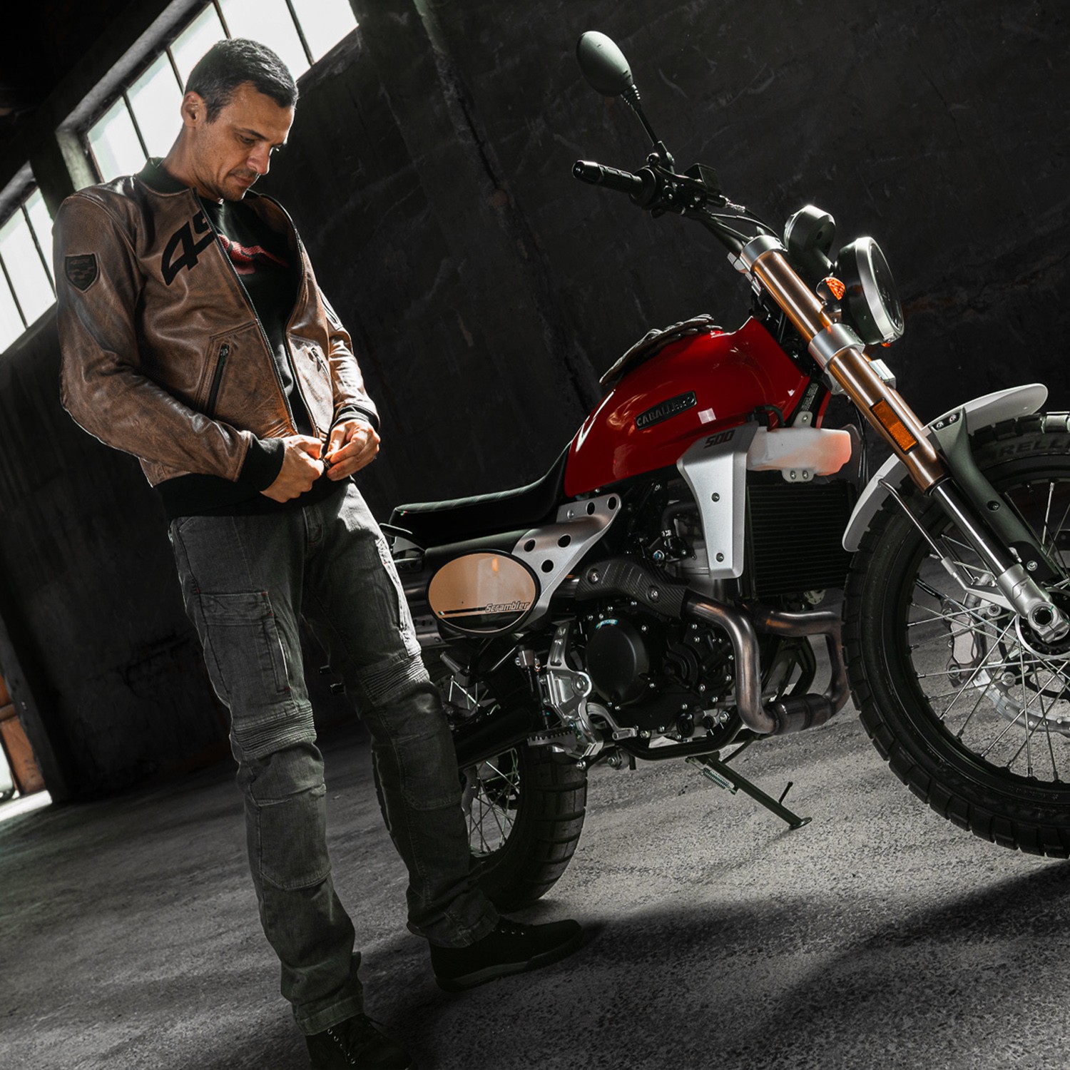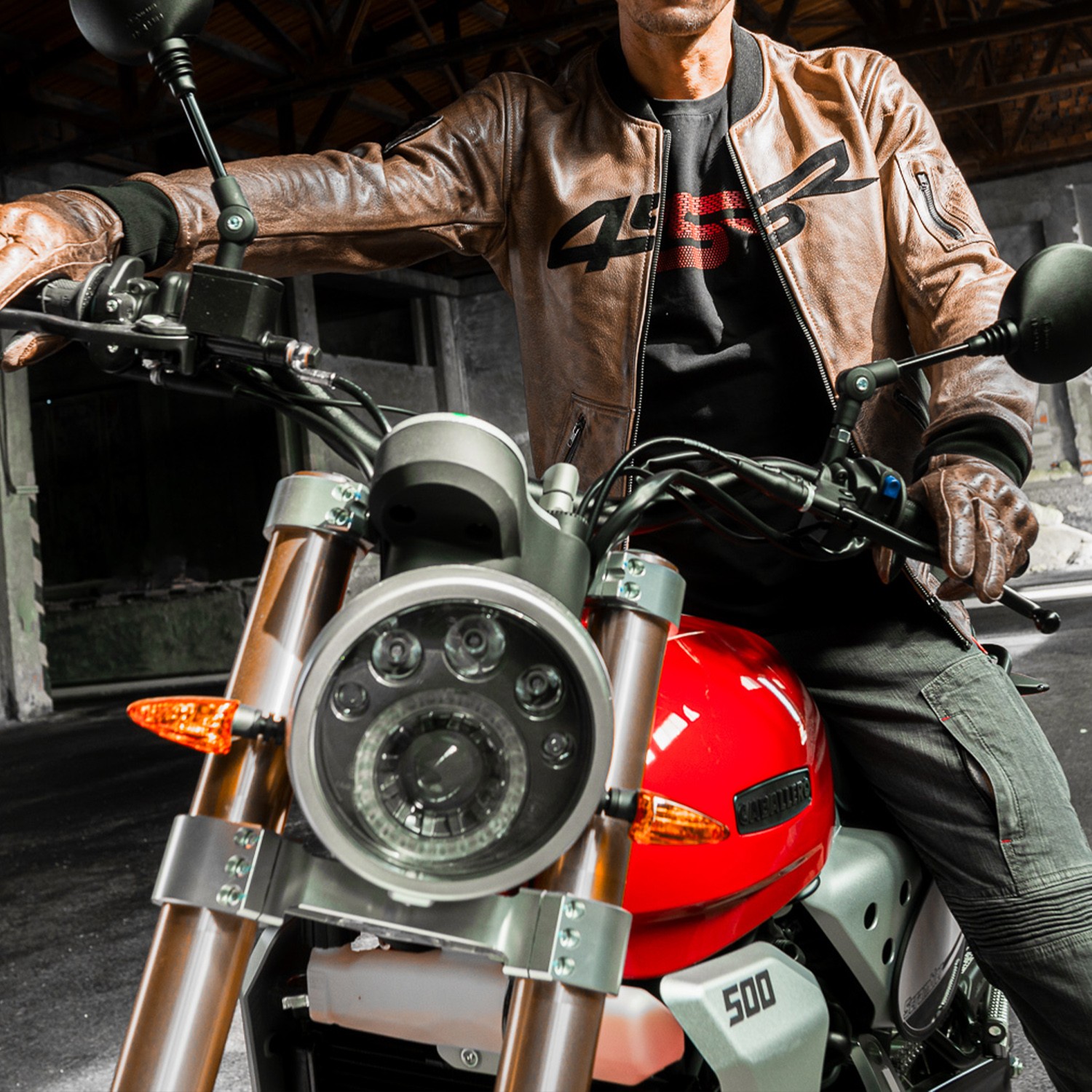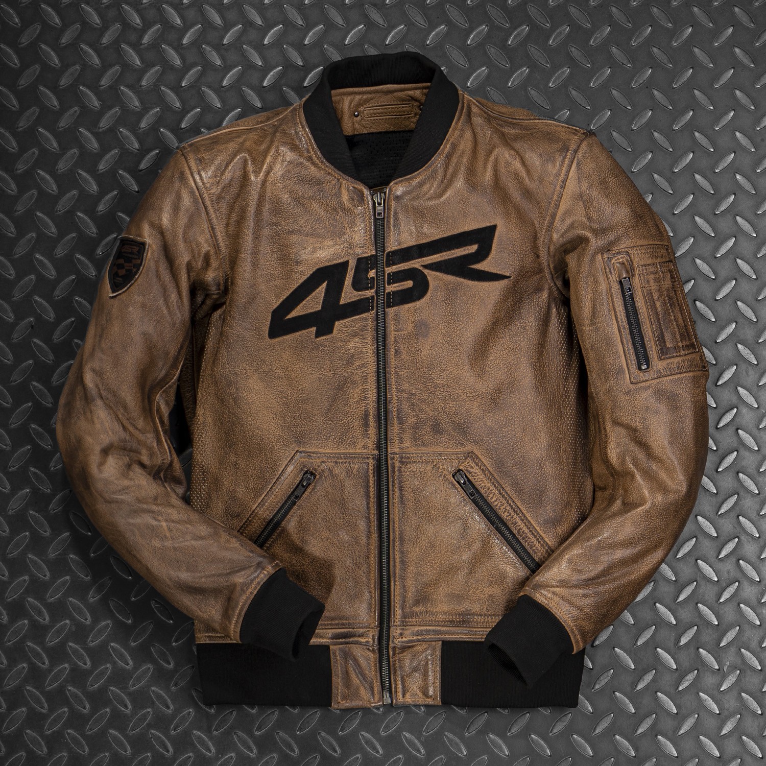 4SR leather moto jacket Bomber Jacket Brown Patina: