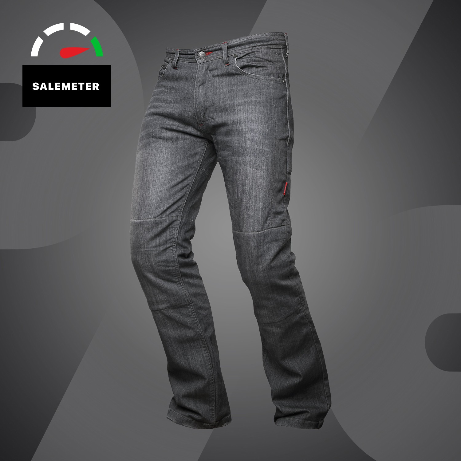 These motorcycle jeans are made of 14 ounce denim reinforced with DuPont™ Kevlar® fiber around the knees and the backside. They feature adjustable cutting-edge Safe Tech knee protectors fixed in our patented pockets. The pockets keep the protectors tight around the knees whilst allowing for a comfortable width of the trousers. Viscofoam (memory foam) protectors on both sides provide protection over the hips. Cool Grey biker jeans feature an improved cut, anatomically shaped knee parts and latest design.