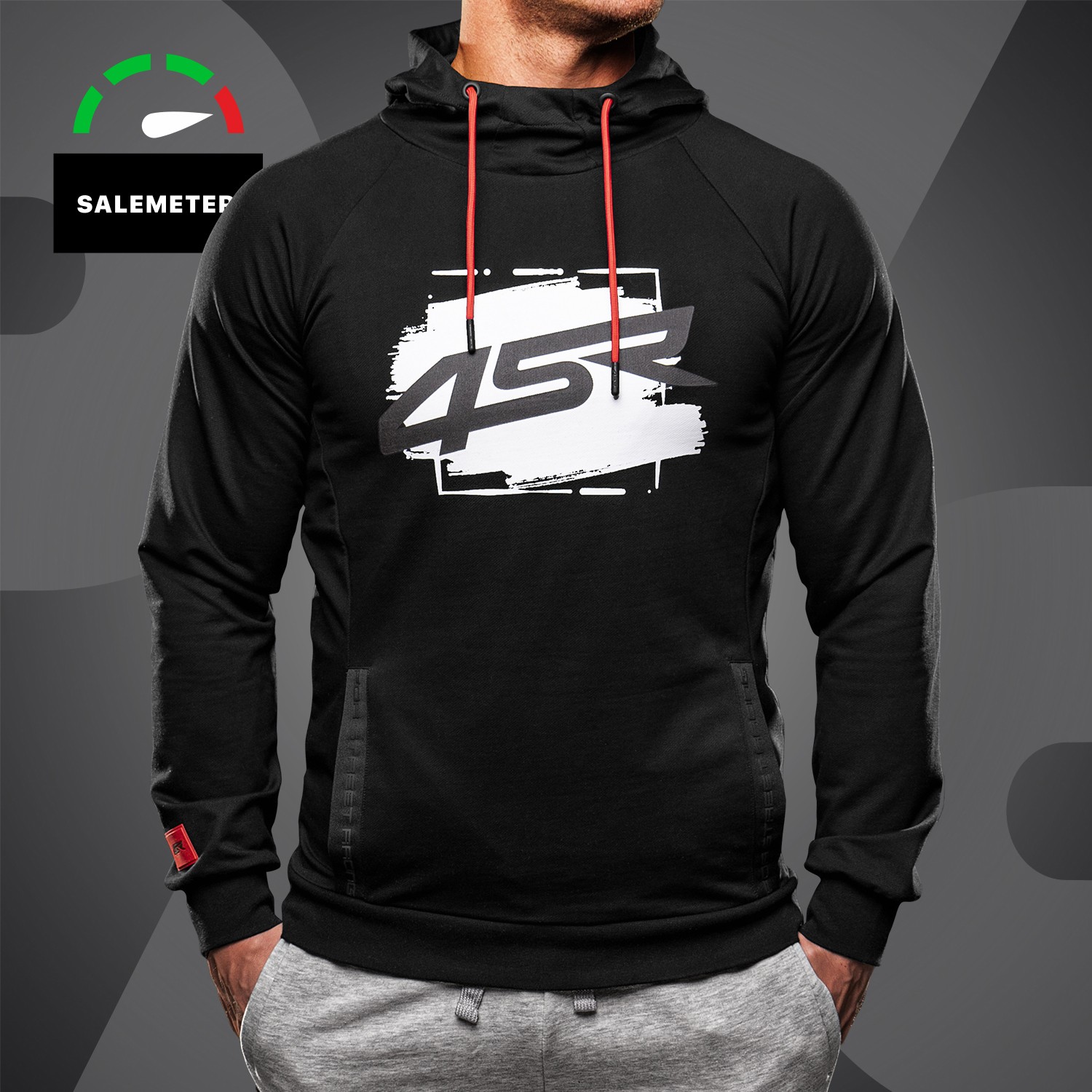 The material is breathable, which ensures optimal air circulation, quickly wicks away moisture and dries quickly. On cold days, it provides thermal comfort while maintaining freedom of movement. A raised collar and an ergonomically shaped hood with drawstrings provide protection from wind and rain. Comfortable raglan sleeves and the bottom hem of the hoodie are finished with a stretchy knit. A stylish accessory is the elastic hems of the inset pockets with the 3D inscription FOR STREET RACING in black.