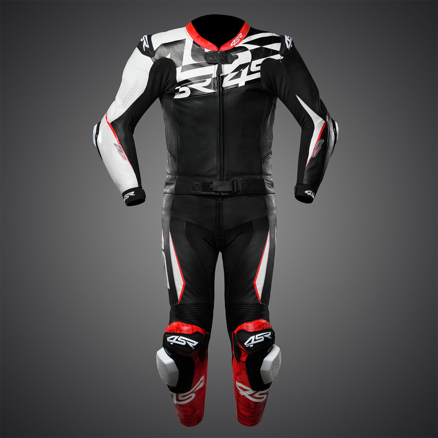 - 4SR suits feature double-layer leather on elbows, shoulders, hips, and seat area
