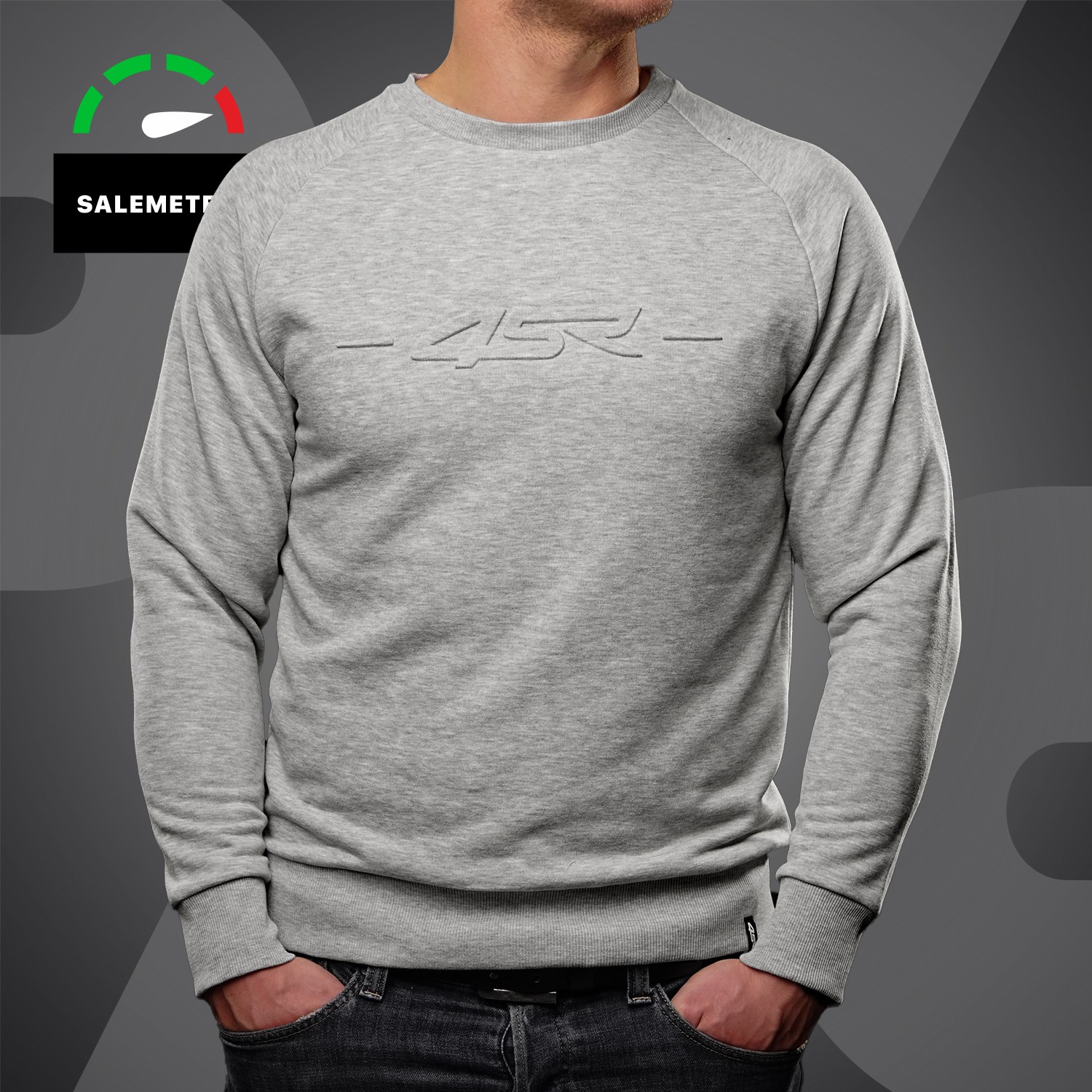 4SR men's crew sweatshirt. This sweatshirt features 4SR 3D embossed logo across the chest, a soft lining and a ribbed collar, hem and cuffs. Finished with a 4SR logo badge above the hem.